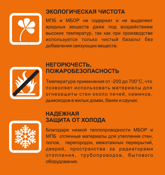 Пожаробезопасность: Материалы МБОР относятся к группе негорючих материалов (НГ). Класс пожарной опасности КМ0.