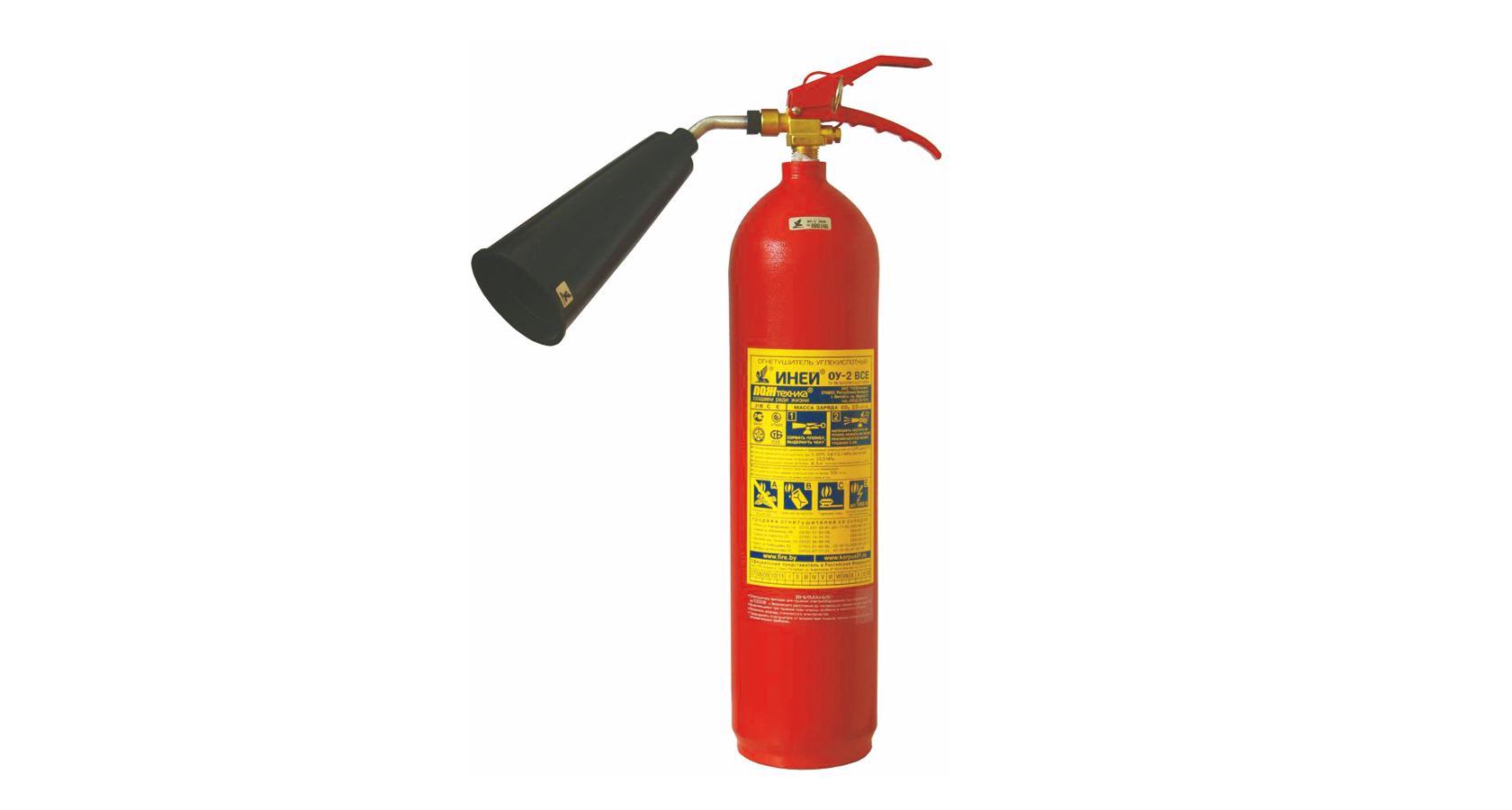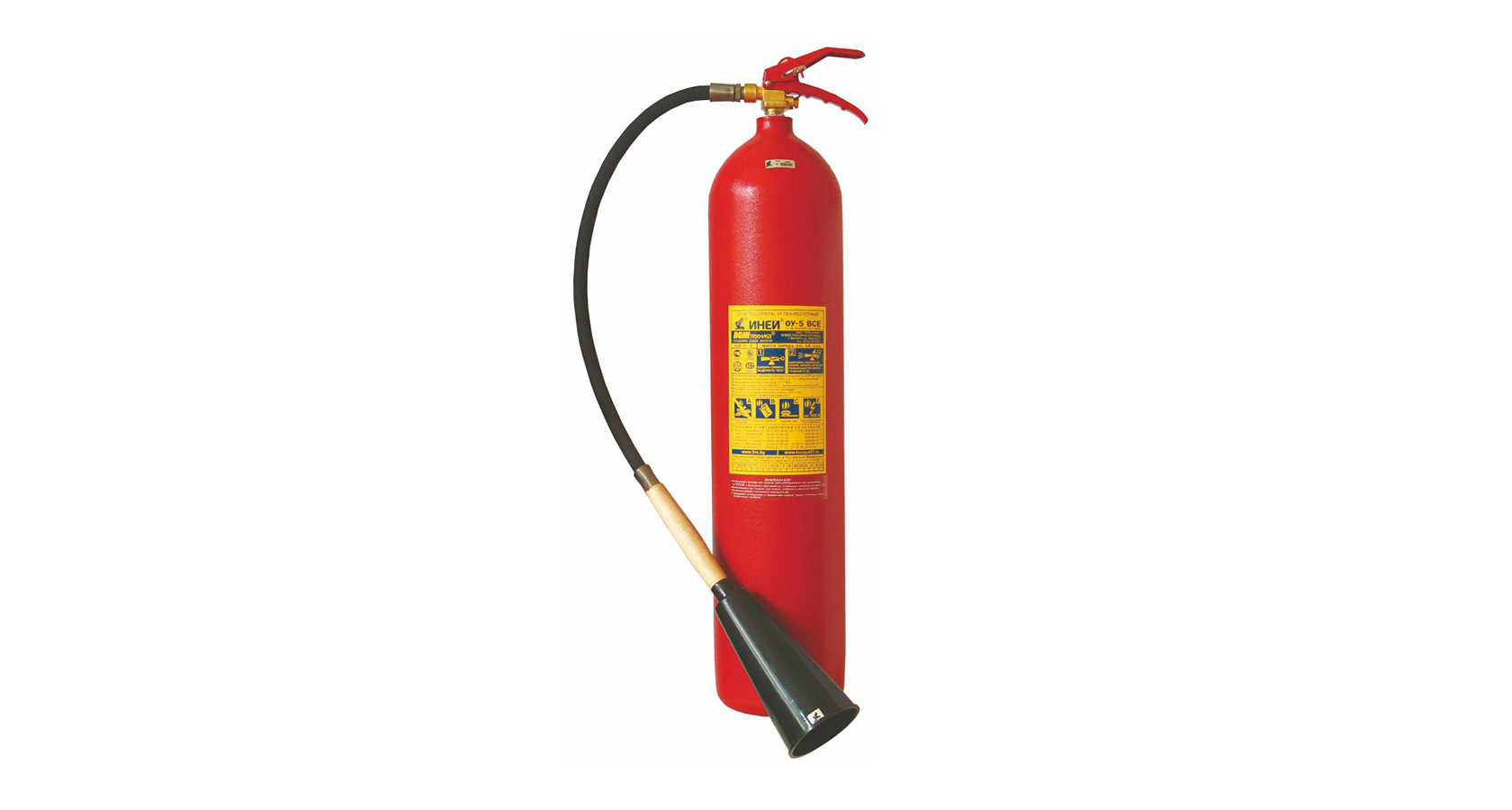 Огнетушитель углекислотный предназначен для тушения возгорания веществ, горение которых не может происходить без доступа воздуха, возгорания электроустановок, находящихся под напряжением не более 10 000 В, жидких и газообразных веществ (класс В,С), возгорания в архивах, музеях, картинных галереях и других аналогичных социально значимых объектах. Газовая смесь УО не наносит вреда объектам тушения.